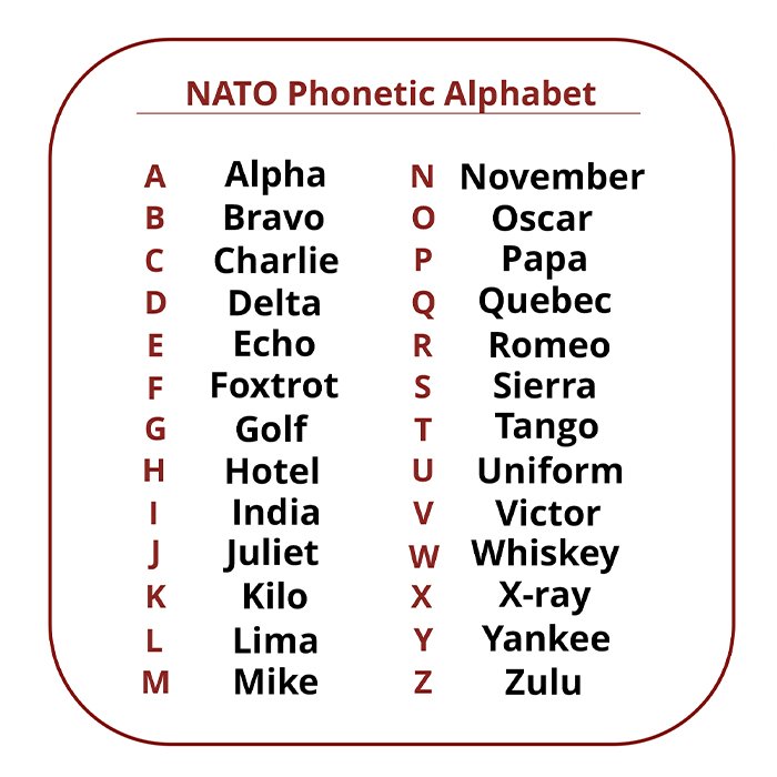 الفبای هوانوردی (NATO Phonetic Alphabet)