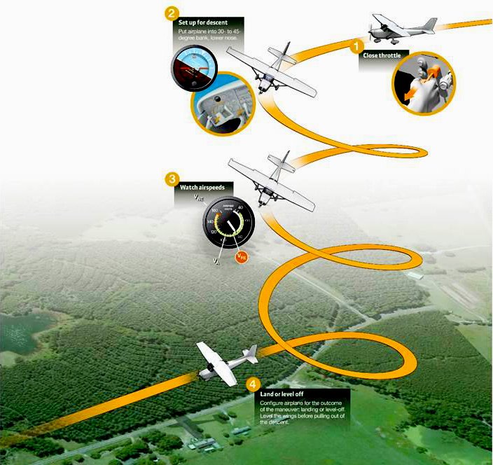 • پایان چرخش: پس از رسیدن به ارتفاع ایمن، خلبان باید چرخش را به‌آرامی خاتمه داده و هواپیما را به پرواز مستقیم بازگرداند.