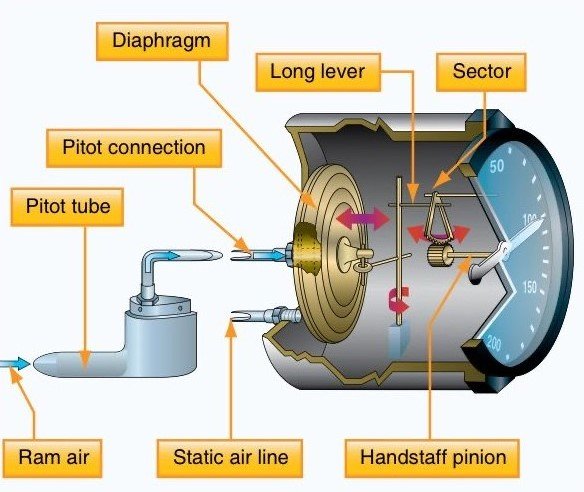• فشار داخل لوله ثابت میماند و نمایشگر سرعت هیچ تغییری نشان نمیدهد، حتی اگر هواپیما کاهش یا افزایش سرعت داشته باشد.